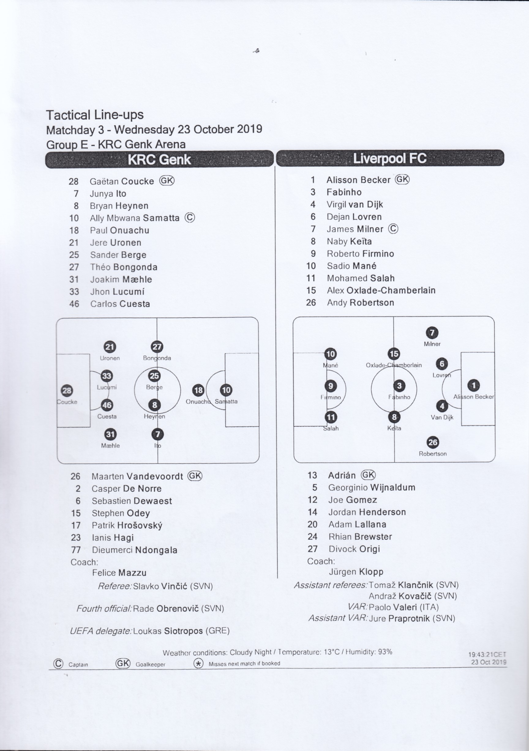 | 31. | Joakim Maehle | 11. | Mohamed Salah | 87 0:4 |