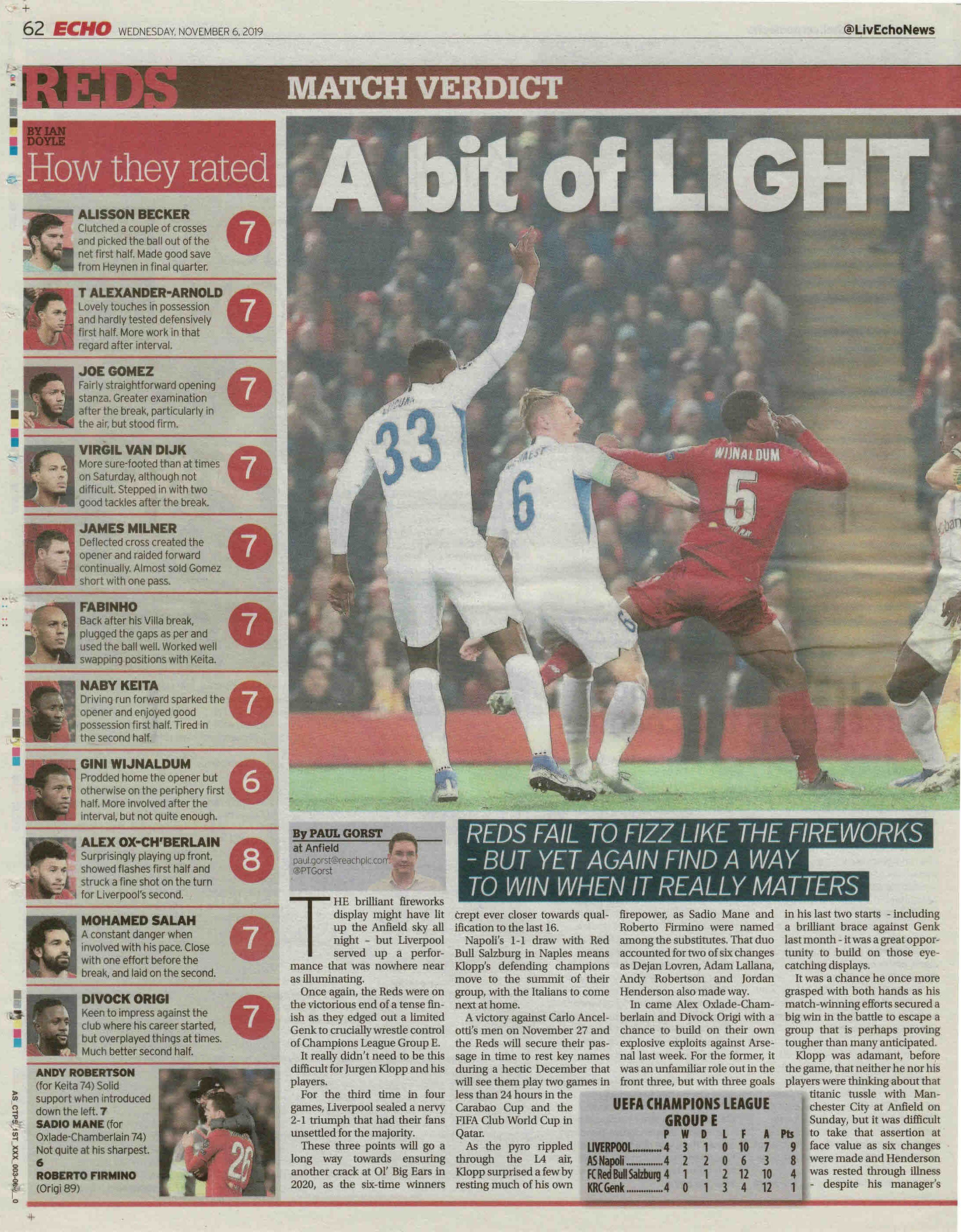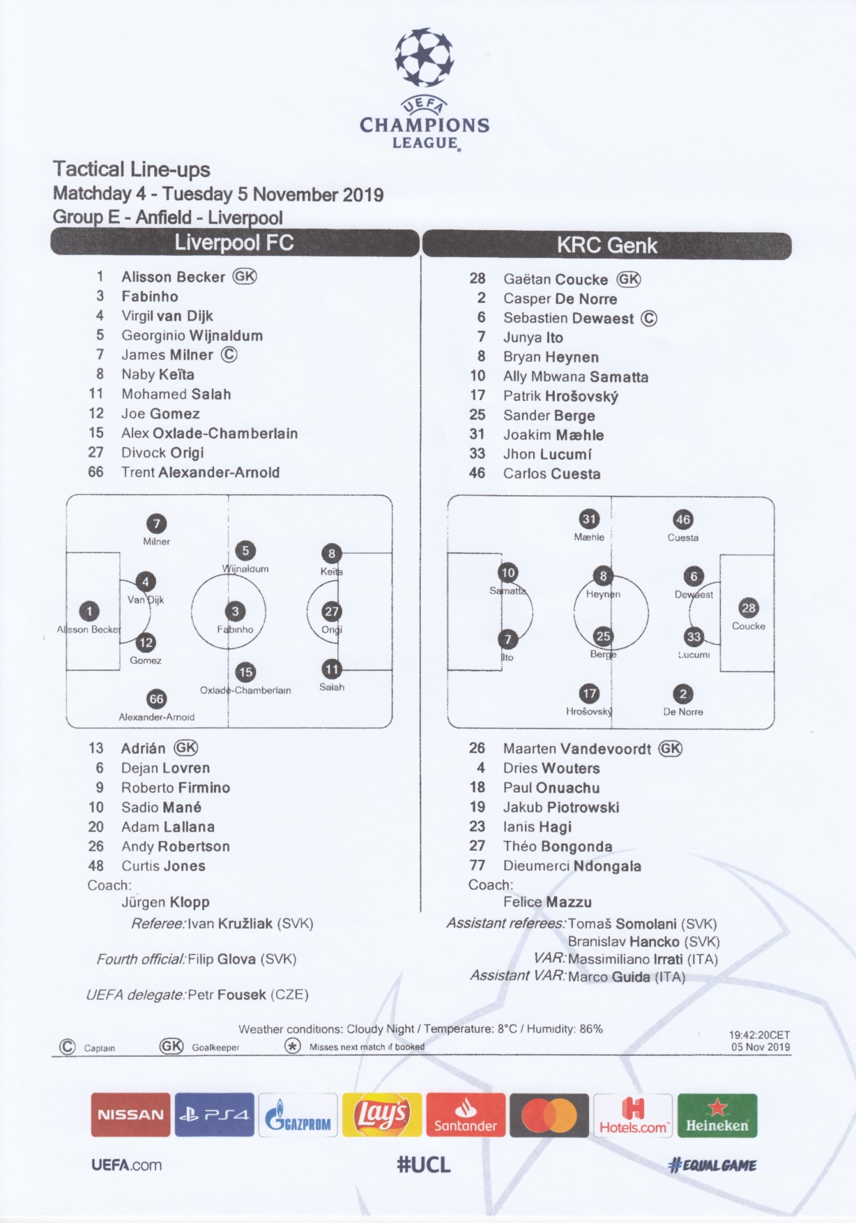 | 6. | Dejan Lovren | 27. | Theo Bongonda | Hrosovsky 85 |