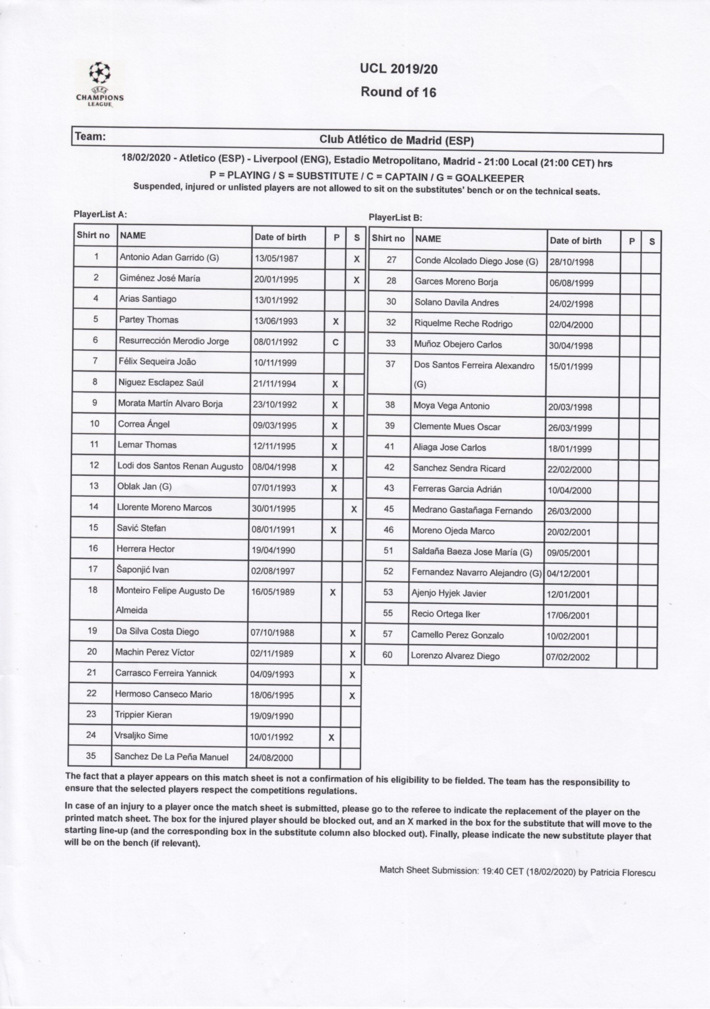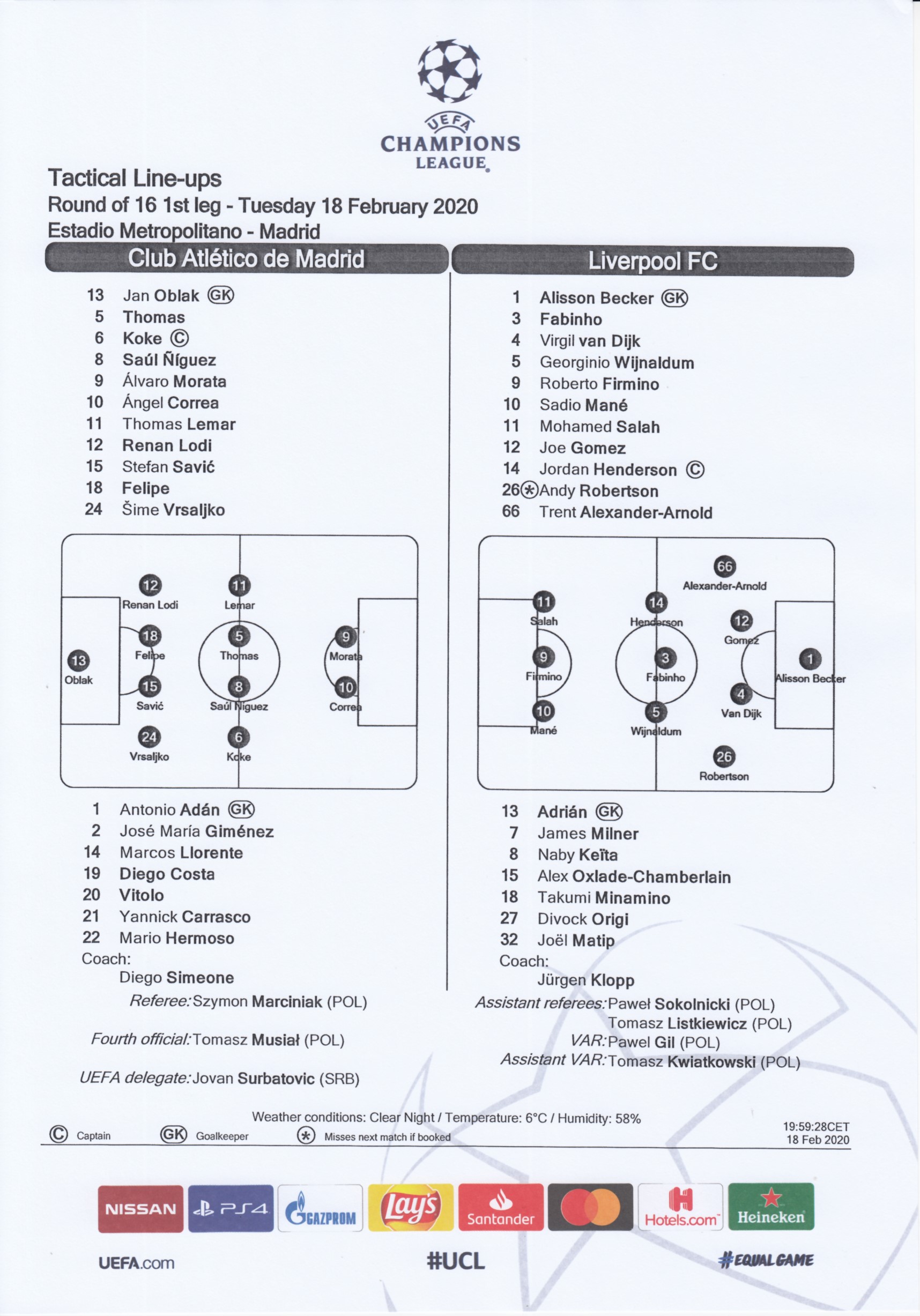 | 6. | Koke (C) | 4. | Virgil Van Dijk | ||||||||||||||||||||||||||||