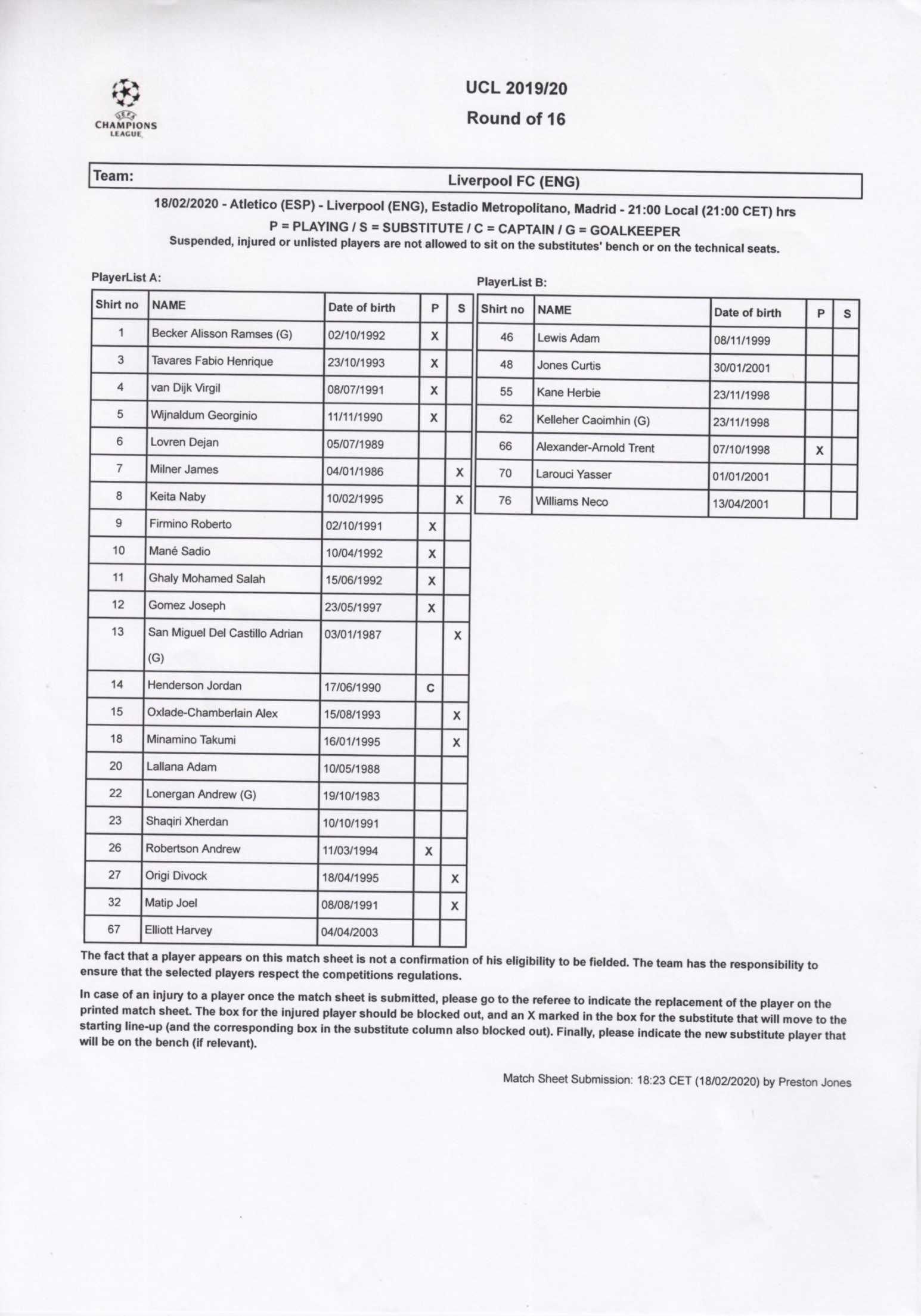 | 18. | Felipe | 26. | Andrew Robertson | ||||||||||||||||||||||||||||