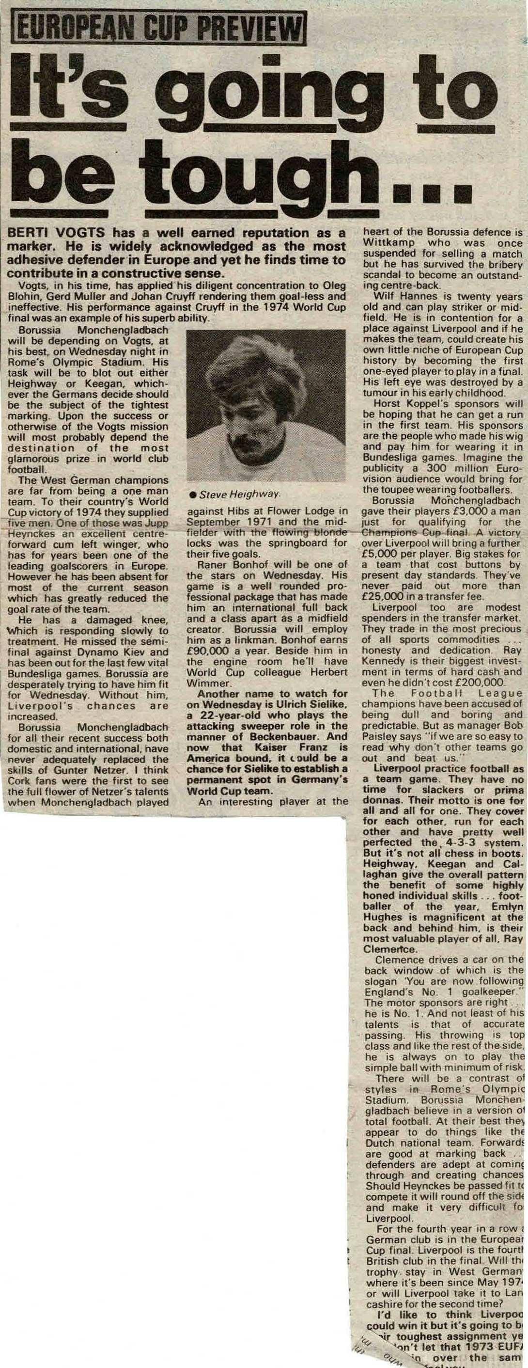 | Liverpool Echo souvenir supplement dated 21 May 1977 previews the FA Cup Final and the European Cup Final. |