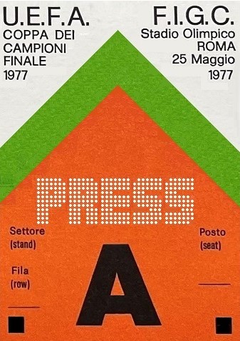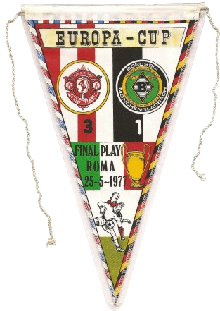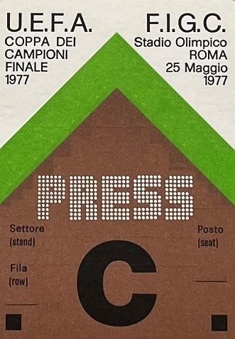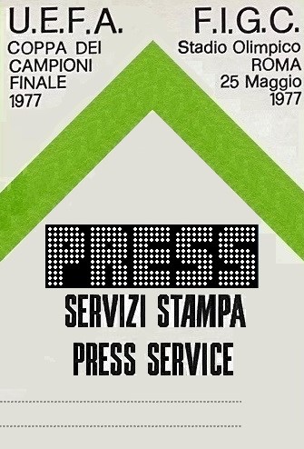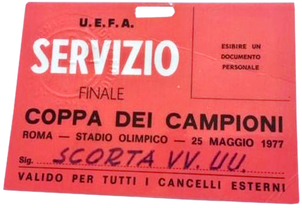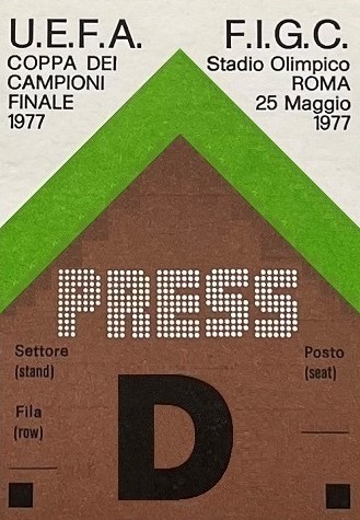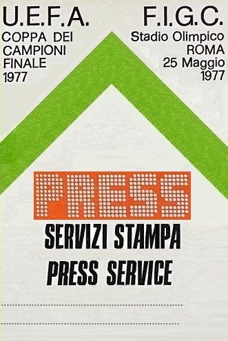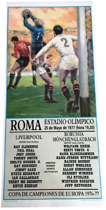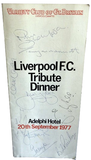 | Menu for a UEFA hosted dinner on 25 May 1977. Previously owned by Liverpool director H. Cartwright. |