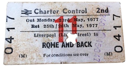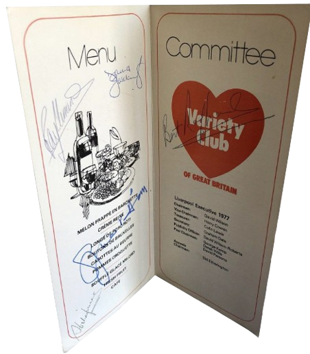 | Menu for an Italian FA hosted dinner on 24 May 1977. Previously owned by Liverpool director H. Cartwright. |