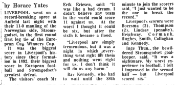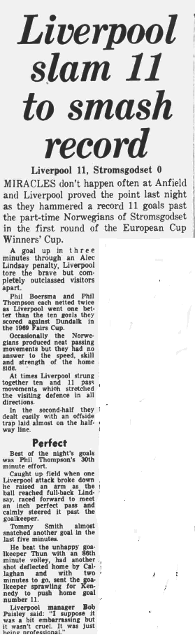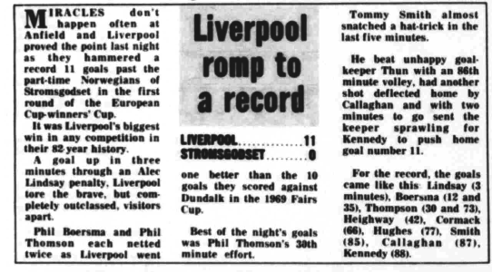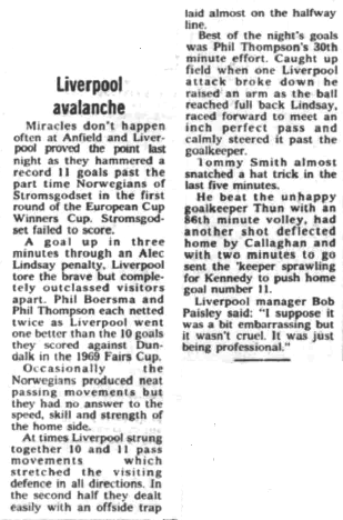 1. | Ray Clemence | 1. | Inge Thun | |||||||||||||||||||||||||||||