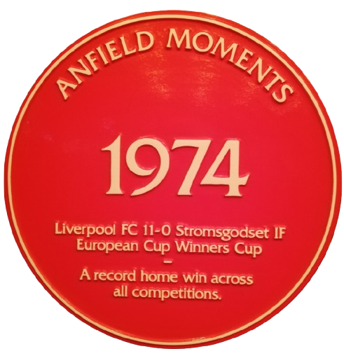 | Plaque from the ‘Anfield Moments’ collection in the Main Stand. | ||